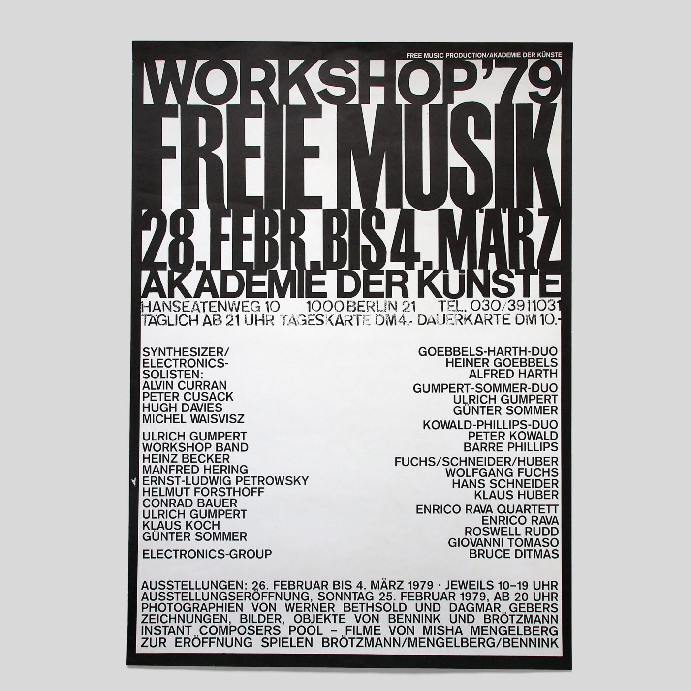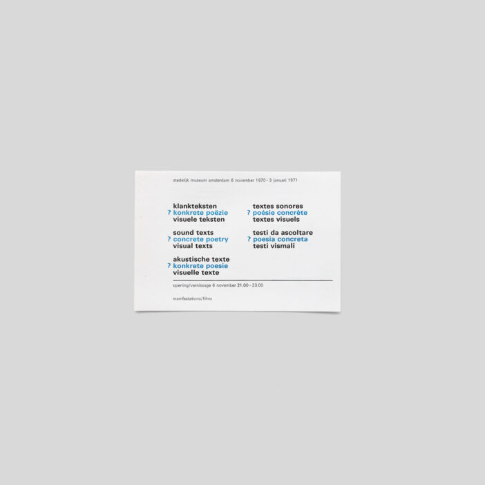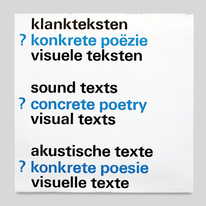 - Pierre and Ilse Garnier, Lily Greenham, Reinhard Döhl, Timm Ulrichs, Gerhard Rühm, Heinz Gappmayr, Siegfried J. Schmidt a.o.