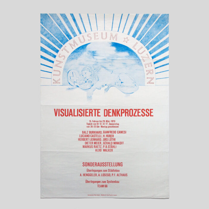 Kunstmuseum Luzern, 1970 ⁄ 82 x 57 cm, silkscreen. exhibition poster ⁄ Balz Burkhard, Gianfredo Camesi, Luciano Castelli, H. Huber, Herbert Lienhard, Urs Lüthi, Dieter Meier, Gérald Minkoff, Markus Raetz, P.B. Stähli, Aldo Walker.