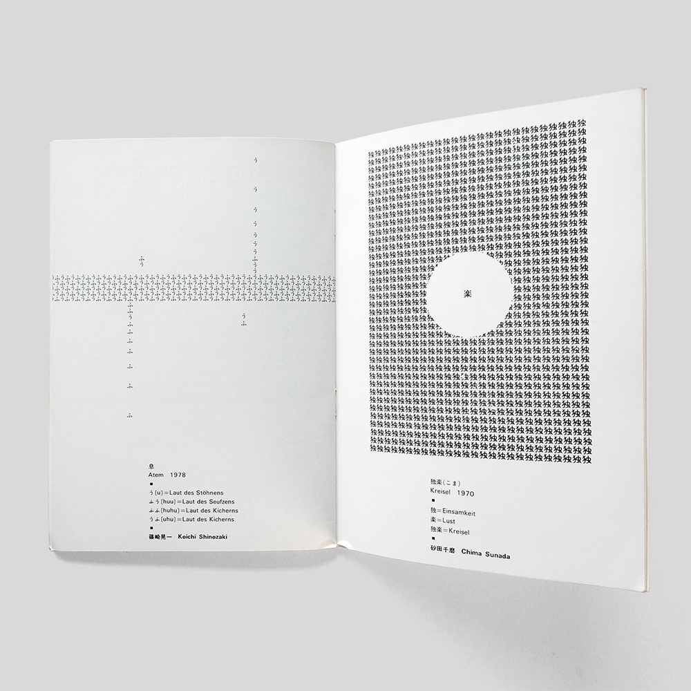 edition rot, Stuttgart, 1966 ⁄ softcover ⁄ edition 550 ⁄ - ⁄ Joe Michaud (usa), Shutaro Mukai (japan), Peter Mardersteig (germany), Ingrid von Oppenheim (germany), Ronald Draper (uk), Hans Amadeus Rosa (switzerland), Elena Asins (spain), Leon Spiro (usa), Yüksel Pazarkaya (turkey), Joaquim Branco (brasil), Kahtan Al-Madfai (iraq, translation: a. el hakim), Carlos Alvear (argentina), Aquiles Branco (brasil)