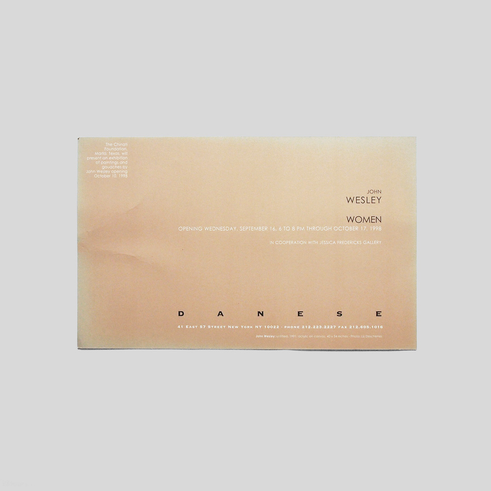 - John Wesley. Opening Saturday, December 4, Through January 6, 1972, Robert Elkon Gallery, 1063 Madison, New York