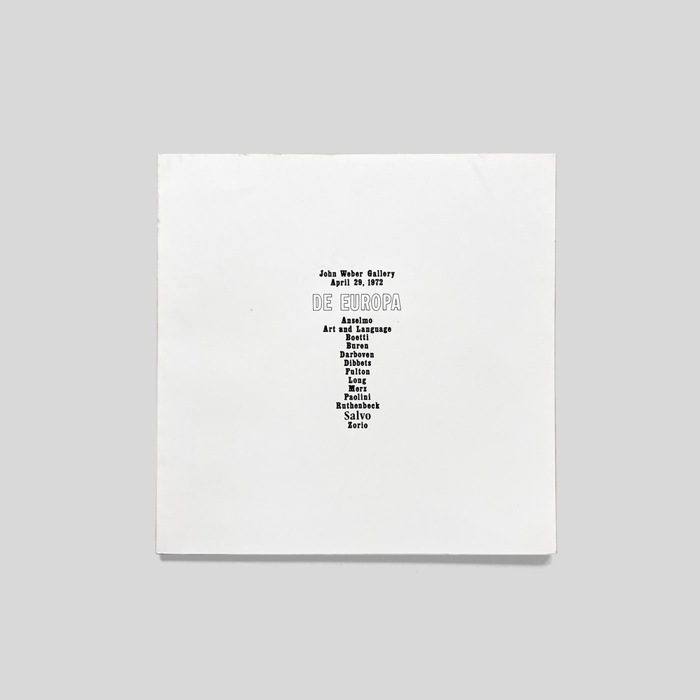 De Europa: John Weber Gallery. April 29 – May 24 1972