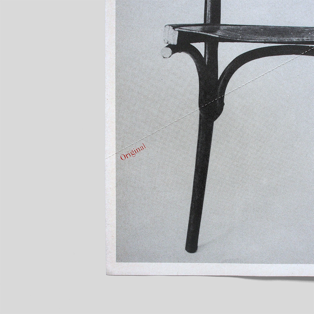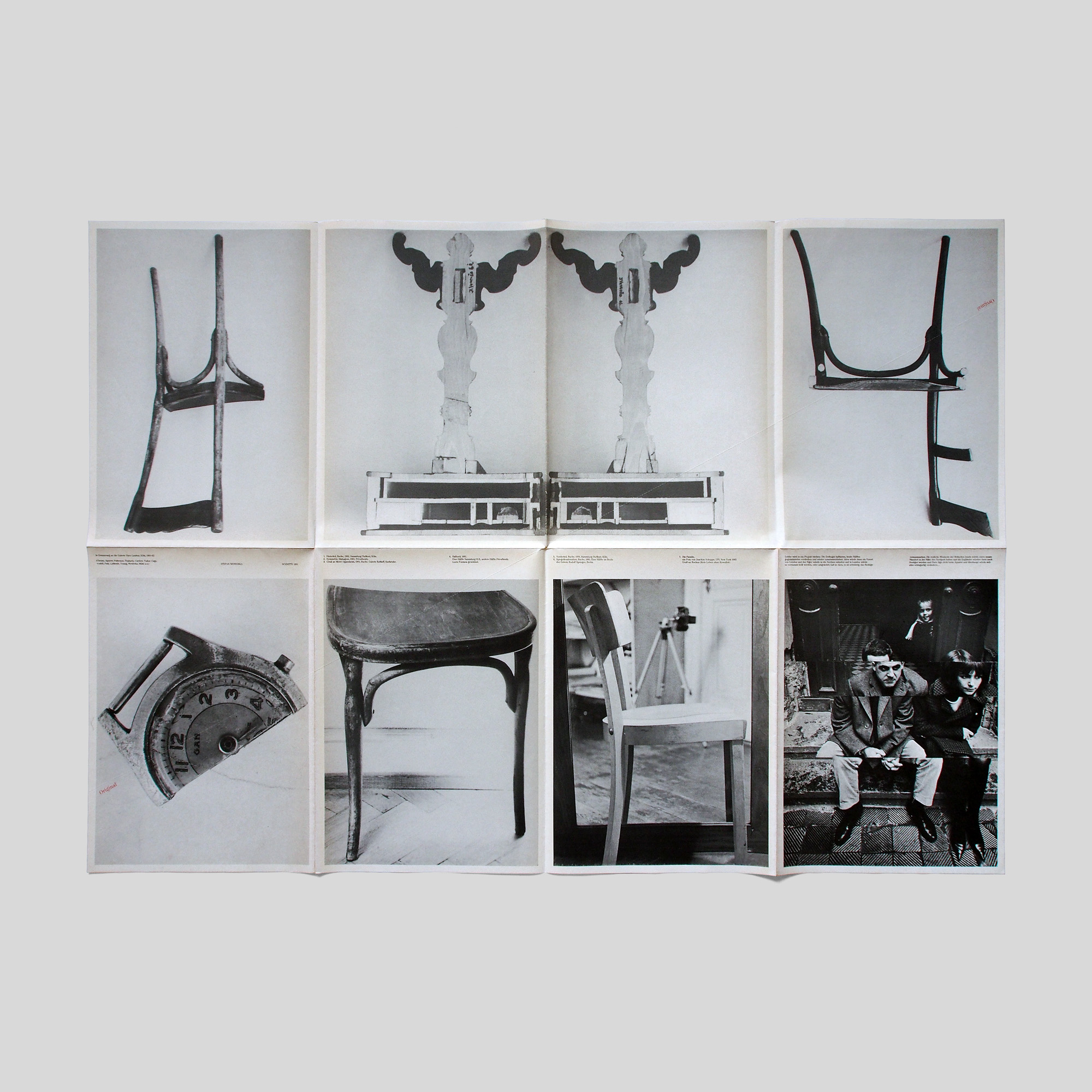 1961年、ステファン・ヴェヴェルカ(Stefan Wewerka)はカット(Schnitte)と椅子の彫刻シリーズの制作に着手する。このマルチプル(ポスター)は、ケルンの Galerie Haro Lauhus でのコーネリアス・カーデュー(Cornelius Cardew)、ナム・ジュン・パイク(Nam June Paik)、ダニエル・スポエリ(Daniel Spoerri)、ロバート・フィリウ(Rober Filliou)、ベンジャミン・パターソン(Ben Patterson)、クリスト(Christo)といった錚々たるアーティストたちとの邂逅から端を発し、作品は彼らに捧げられた。収録された7作品には、家具彫刻や写真オブジェ「Halbzeit」、そして妻のイングリッド・ブロイヒ(Ingrid Broich)と息子アレクサンダーと制作した写真コラージュ「Familie」がここで初めて発表されている。シートには斜めにミシン目加工が施され、各セクションには「Original」の文字が刻印されている。[参照:Daniel Thierstein Katalog Archiv edition et, Berlin. 153頁]
