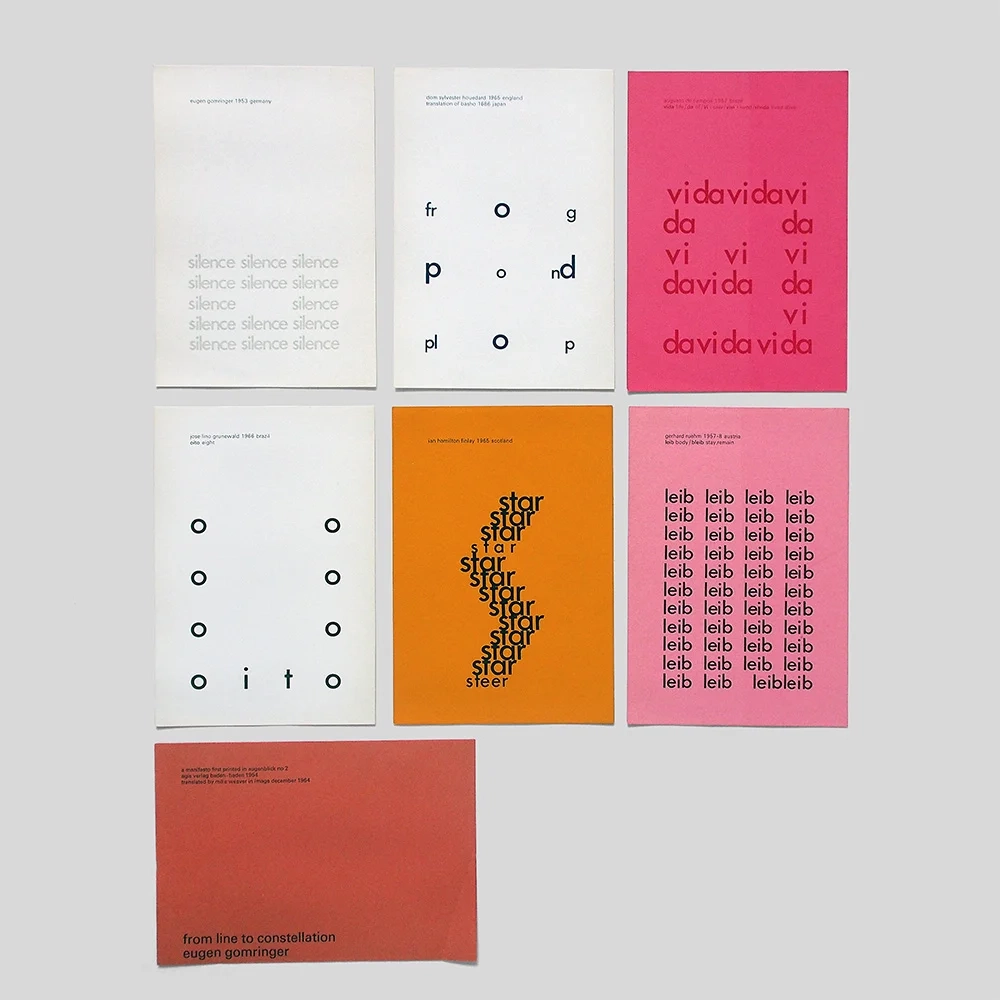 - six postcards along with an essay by Eugen Gomringer, presented in a printed envelope.