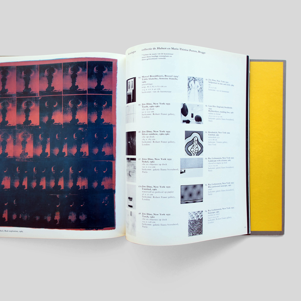 Woody van Amen, Carl Andre, Shusaku Arakawa, Arman, Eduardo Arroyo, Joseph Beuys, Peter Blake, Lee Bontecou, Marcel Broodthaers, Mark Brusse, Toni Burgering, Lourdes Castro, Christo, Bruce Conner, Hanne Darboven, Erik Dietman, Jim Dine, Lars Englund, Lucio Fontana, Jaak Frenken, Piero Gilardi, Daan van Golden, Jurjen De Haan, Jan Hendrikse, Paul Van Hoeydonck, Robert Indiana, Alain Jacquet, Jasper Johns, Donald Judd, Ellsworth Kelly, Edward Kienholz, Nicholas Krushenick, Tetsumi Kudo, Yayoi Kusama, Bruce Lacey, Sol LeWitt, Roy Lichtenstein, Piero Manzoni, Robert Morris, Claes Oldenburg, Panamarenko, Larry Poons, Robert Rauschenberg, Jean Pierre Raynaud, Martial Raysse, James Rosenquist, Mimmo Rotella, Jean-Michel Sanejouand, Wim T. Schippers, Jan Schoonhoven, George Segal, Daniel Spoerri, Frank Stella, Peter Struycken, Takis, Günther Uecker, Carel Visser, Andy Warhol, Tom Wesselmann, Co Westerik